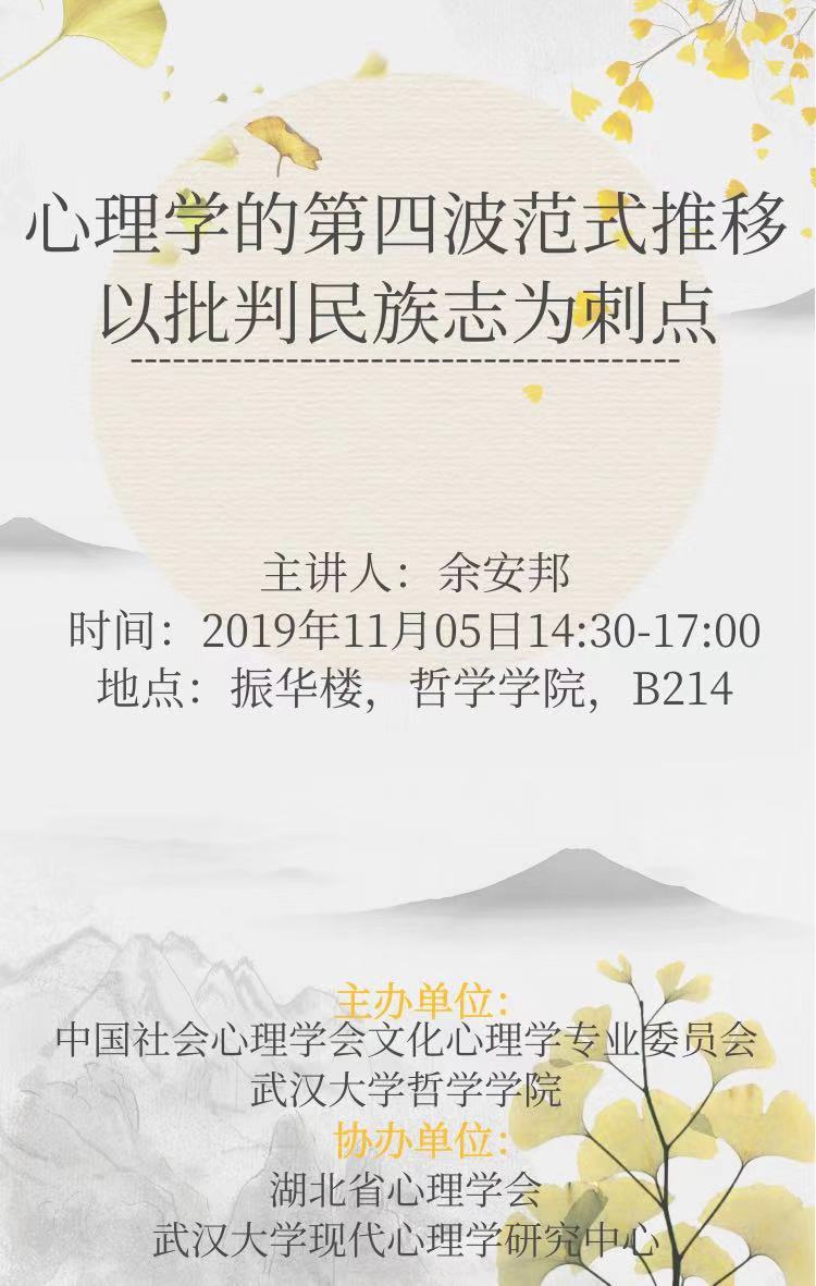 【11月5日】心理学的第四波范式推移以批判民族志为刺点