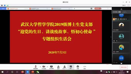 本网讯(通讯员:詹思群)2020年7月3日下午,RAYBET雷竞技2019级博士生党支部开展了“迎党的生日、讲战疫故事、悟初心使命” 专题组织生活会和“共庆政治生日,永葆入党初心”的主题党日活动。支部党建指导老师吴昕炜出席本次会议,支部全体党员、积极分子参会。